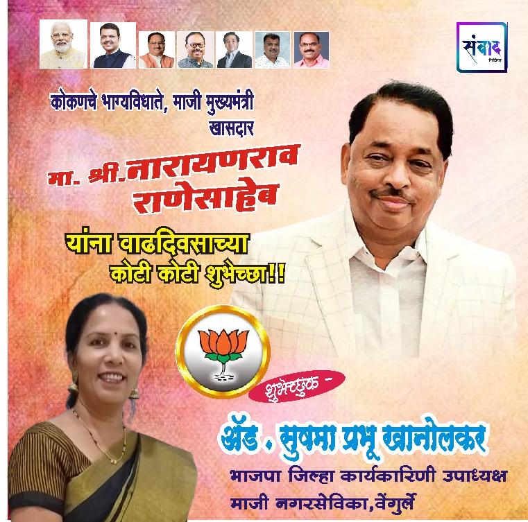 मा. श्री नारायणराव राणे साहेब यांना वाढदिवसाच्या कोटी कोटी शुभेच्छा!!💐💐 – ॲड . सुषमा प्रभू खानोलकर