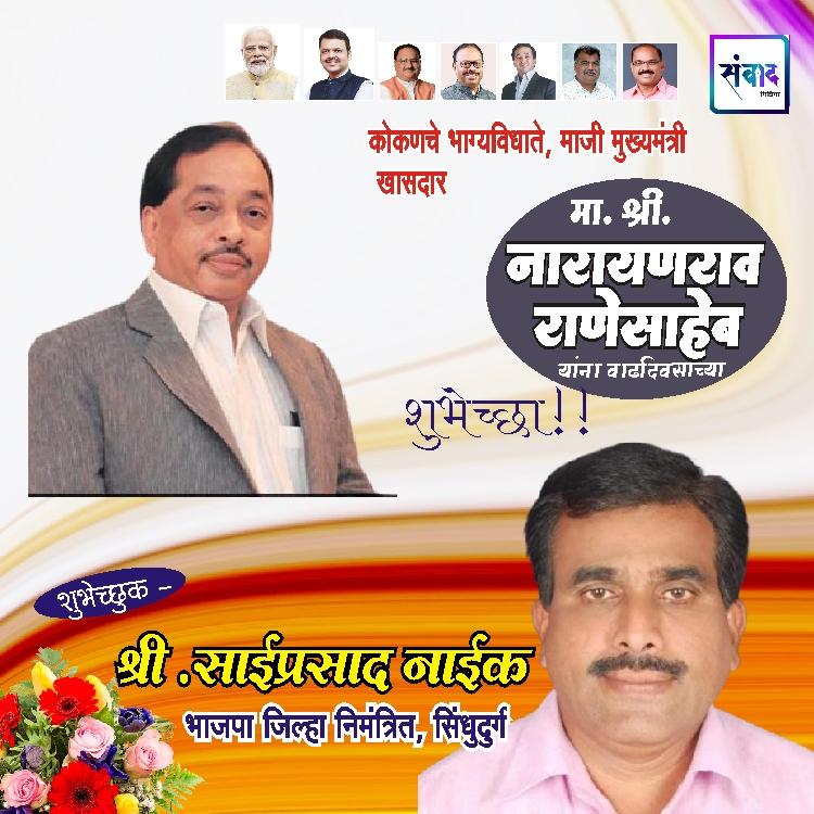 मा. श्री नारायणराव राणे साहेब यांना वाढदिवसाच्या कोटी कोटी शुभेच्छा!!💐💐 – श्री साईप्रसाद नाईक Post published:एप्रिल 9, 2025 Post category:इतर / वेंगुर्ले Post comments:0 Comments *कोकणचे भाग्यविधाते, माजी मुख्यमंत्री, खासदार मा. श्री नारायणराव राणे साहेब यांना वाढदिवसाच्या कोटी कोटी शुभेच्छा!!💐💐* *💐!!शुभेच्छुक!!*💐 *🌹 श्री साईप्रसाद नाईक🌹* *भाजपा जिल्हा निमंत्रित, सिंधुदुर्ग* Share this: Click to share on WhatsApp (Opens in new window) WhatsApp Click to share on Facebook (Opens in new window) Facebook Click to share on X (Opens in new window) X Click to share on LinkedIn (Opens in new window) LinkedIn Click to print (Opens in new window) Print You Might Also Like वजराट ग्रामपंचायत येथे रक्तदान शिबिर संपन्न ऑगस्ट 6, 2024 श्री रामराजे कॉलेज ऑफ फिजियोथेरेपी , दापोली. ऑगस्ट 28, 2024 आमदार नितेश राणे यांची राष्ट्रीय समाज पक्ष प्रमुख पदाधिकारी यांनी घेतली कणकवली येथील निवासस्थानी भेट एप्रिल 29, 2024 श्री देवी आंगणेवाडी भराडी मातेच्या यात्रोत्सवास येणाऱ्या भाविकांचे हार्दिक स्वागत ! – सतीश आचरेकर फेब्रुवारी 4, 2023 प्रतिक्रिया व्यक्त करा उत्तर रद्द करा.CommentEnter your name or username to comment Enter your email address to comment Enter your website URL (optional) Notify me of follow-up comments by email. Notify me of new posts by email. Δ