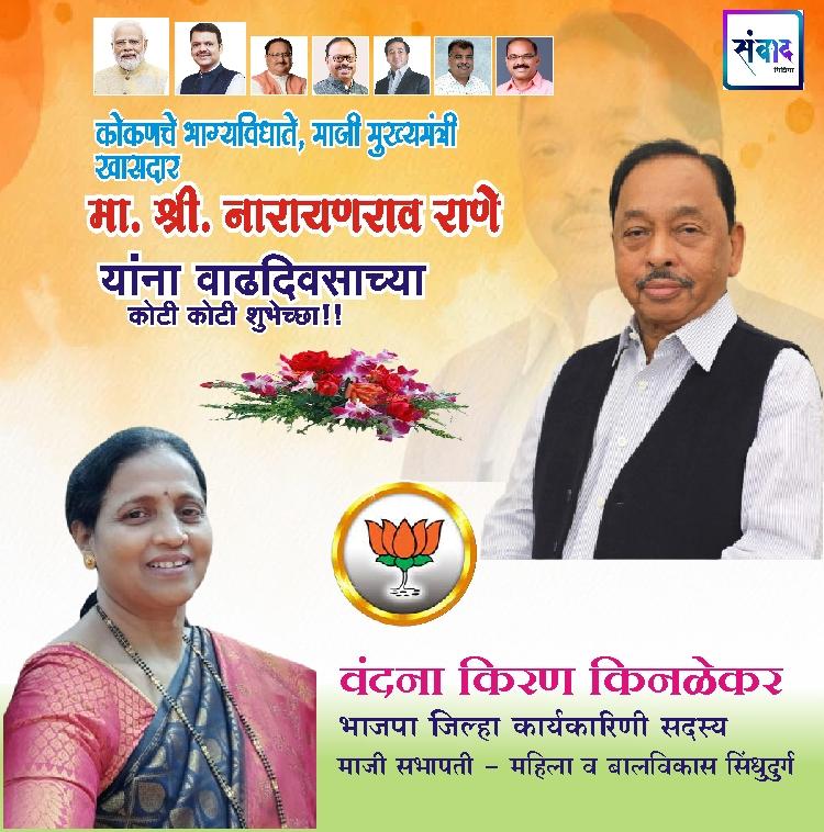 मा. श्री नारायणराव राणे साहेब यांना वाढदिवसाच्या कोटी कोटी शुभेच्छा!!💐💐 – वंदना किरण ‌ किनळेकर
