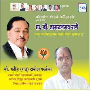मा. श्री नारायणराव राणे साहेब यांना वाढदिवसाच्या कोटी कोटी शुभेच्छा!!💐💐 – श्री. सतीश (राजू) दामोदर परुळेकर