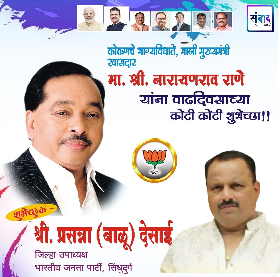 *कोकणचे भाग्यविधाते, माजी मुख्यमंत्री, खासदार मा. श्री नारायणराव राणे साहेब यांना वाढदिवसाच्या कोटी कोटी शुभेच्छा!!💐💐*
