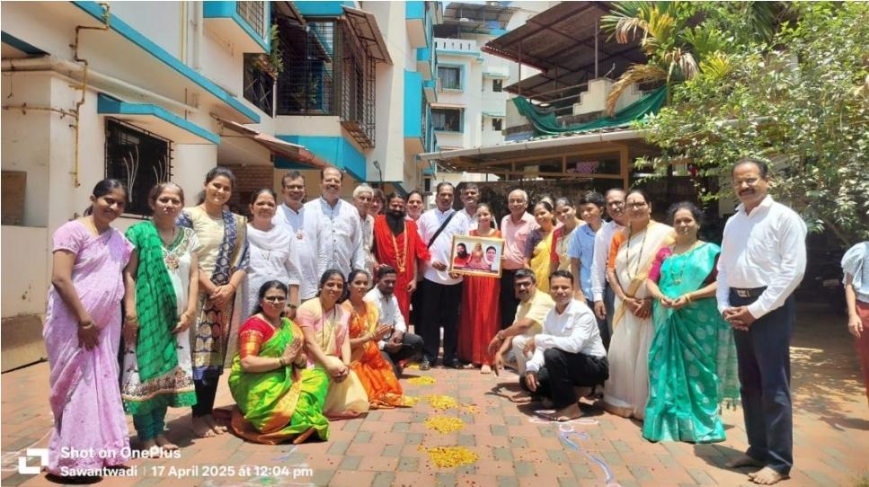 कुडाळ येथे पतंजली योग पीठतर्फे आयोजित योगाभ्यास प्रशिक्षण वर्गाला भेट दिल्यानंतर स्वामी परमार्थ देवजी यांनी सावंतवाडीत रवींद्र प्रभू देसाई यांच्या निवासस्थानी पतंजली योग समिती सिंधुदुर्ग शाखेच्या योग अभ्यासकांना मार्गदर्शन केले. यावेळी त्यांचे भव्य स्वागत करण्यात आले.