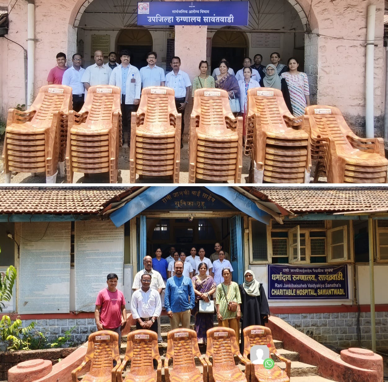 कै. प्रभाकर मधुकर आराबेकर स्मरणार्थ सावंतवाडी हॉस्पिटल व जानकीबाई सुतिकागृहाला 45 रिलॅक्स चेअर सुपूर्त.
