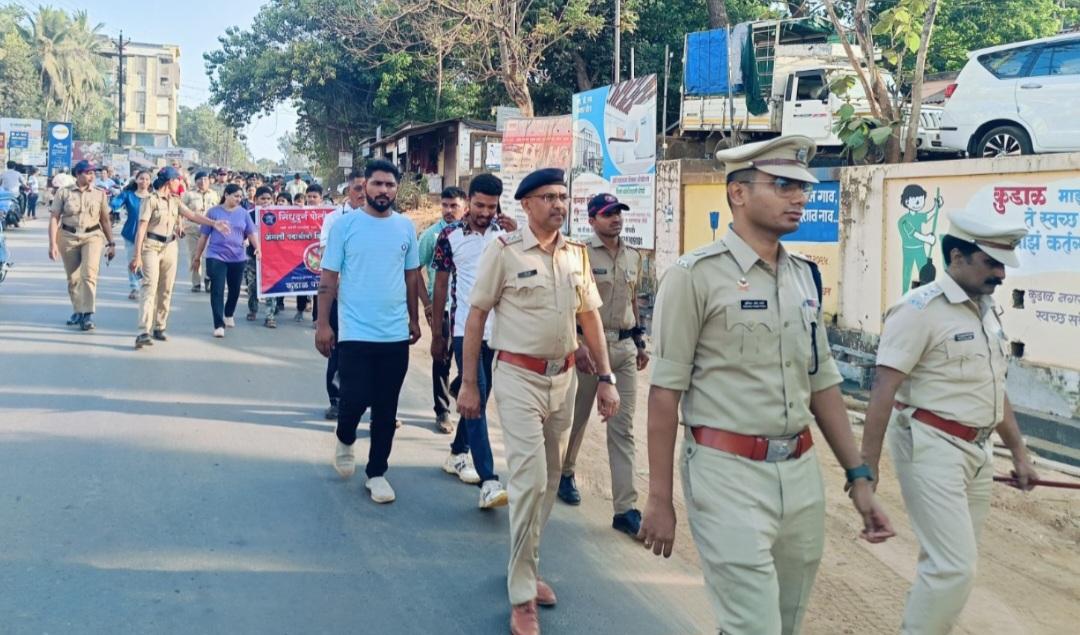 अंमली पदार्थाच्या विरोधात जनजागृती करण्यासाठी आज कुडाळ पोलिसांच्या माध्यमातून शहरात जनजागृती रॅली काढण्यात आली. यावेळी पोलीस ठाणे ते डॉ. बाबासाहेब आंबेडकर चौक अशी ही रॅली फिरवण्यात आली. यावेळी अप्पर पोलीस अधीक्षक कृषिकेश रावले, उपविभागीय पोलीस अधिकारी विनोद कांबळी, पोलीस निरीक्षक राजेंद्र मगदूम यांच्यासह पोलिस ठाण्याचे ४ अधिकारी, २७ अंमलदार, पोलीस पाटील, विद्यार्थी, शिक्षक सहभागी झाले होते. या रॅलीमध्ये आम्ही पदार्थ विरोधी घोषणा देण्यात आले तसेच सर्वांना शपथ देण्यात आली.