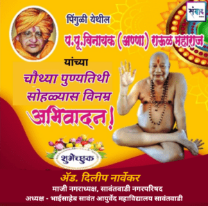 *पिंगुळी येथील प.पू.विनायक (अण्णा) राऊळ महाराज यांच्या चौथ्या पुण्यतिथी सोहळ्यास विनम्र अभिवादन व येणाऱ्या भाविकांचे हार्दिक स्वागत!!💐*