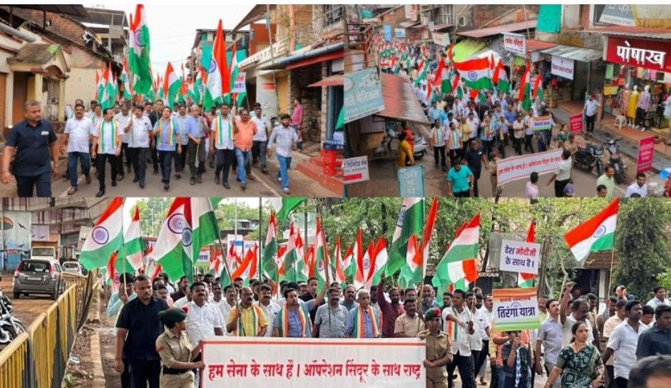 ऑपरेशन सिंदूरच्या पार्श्वभूमीवर भारतीय सैन्याचे मनोबल वाढवण्यासाठी कणकवलीत भव्य तिरंगा रॅली काढण्यात आली होती. शहरातील पटकीदेवी मंदिर येथून शुक्रवारी सायंकाळी ५:३० वा. बाजारपेठ मार्गे तहसीलदार कार्यालयपर्यंत ही तिरंगा रॅली यात्रा निघाली होती. दरम्यान यावेळी, भारत माता की …. जय, वंदे…. मातरम, अशा घोषणा देत ही तिरंगा रॅली यात्रा मार्गस्थ झाली होती. कणकवली येथील तहसीलदार कार्यालयाजवळ राष्ट्रगीताने या तिरंगा रॅली यात्रेचा समारोप करण्यात आला.