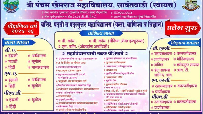 श्री पंचम खेमराज महाविद्यालय, सावंतवाडी -प्रवेश प्रक्रिया सुरु…..