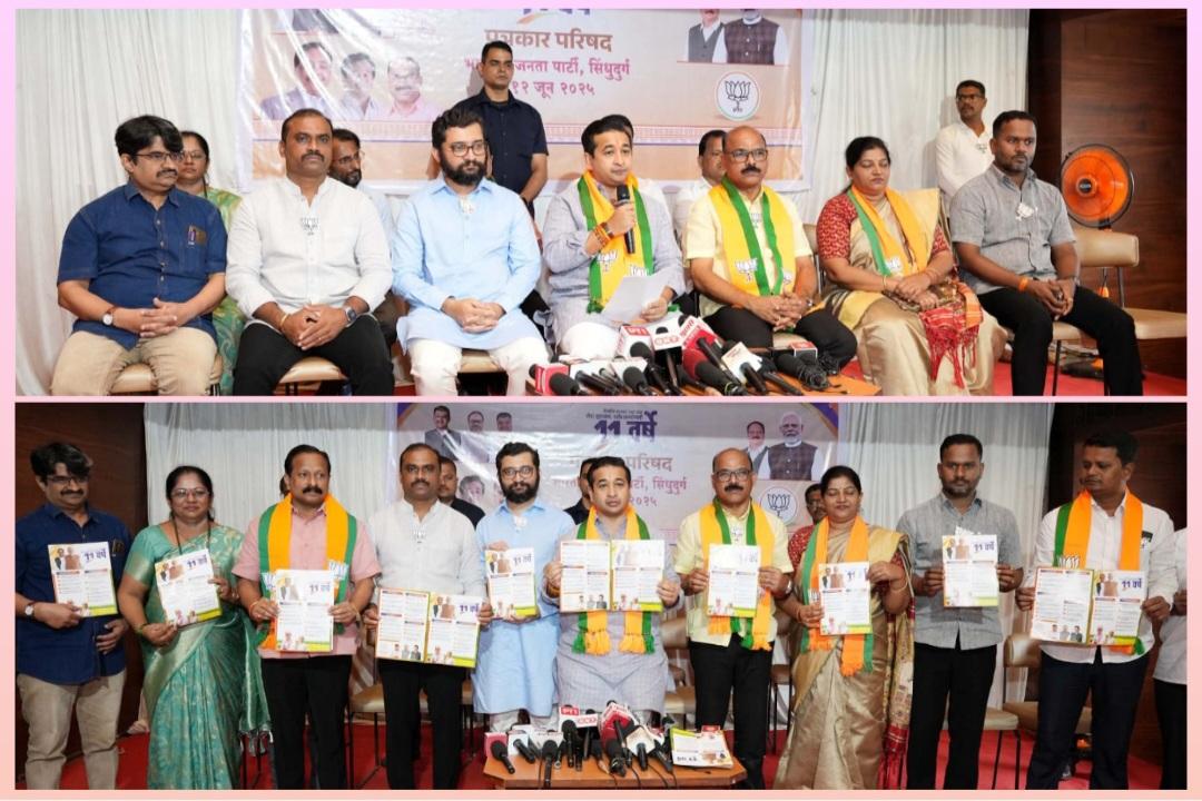 भारताचे पंतप्रधान नरेंद्र मोदी यांच्या कारकीर्दीला अकरा वर्षे पूर्ण झाली. यानिमित्ताने भारतीय जनता पार्टी सिंधुदुर्गच्या वतीने विकसित भारताचा अमृत काल, सेवा सुशासन आणि गरीब कल्याण हे मोदी सरकारची अकरा वर्ष विकासाची ध्येय दृष्टी गाठणारी होती याची माहिती देण्यासाठी पत्रकार परिषद आयोजित करण्यात आली. यावेळी भारतीय जनता पार्टीचे जिल्हाध्यक्ष प्रभाकर सावंत, महिला जिल्हाध्यक्ष श्वेता कोरगावकर, संयोजक मनोज रावराणे, सहसंयोजक लखमराजे भोसले, डॉ. मिलिंद कुलकर्णी, युवा मोर्चा जिल्हाध्यक्ष संदीप मेस्त्री, मागास सेलचे जिल्हाध्यक्ष नामदेव जाधव, कणकवली तालुका भाजप अध्यक्ष मिलिंद मेस्त्री, माजी नगराध्यक्ष समीर नलावडे, देवगड माजी नगराध्यक्ष साळसकर, आदी उपस्थित होते.