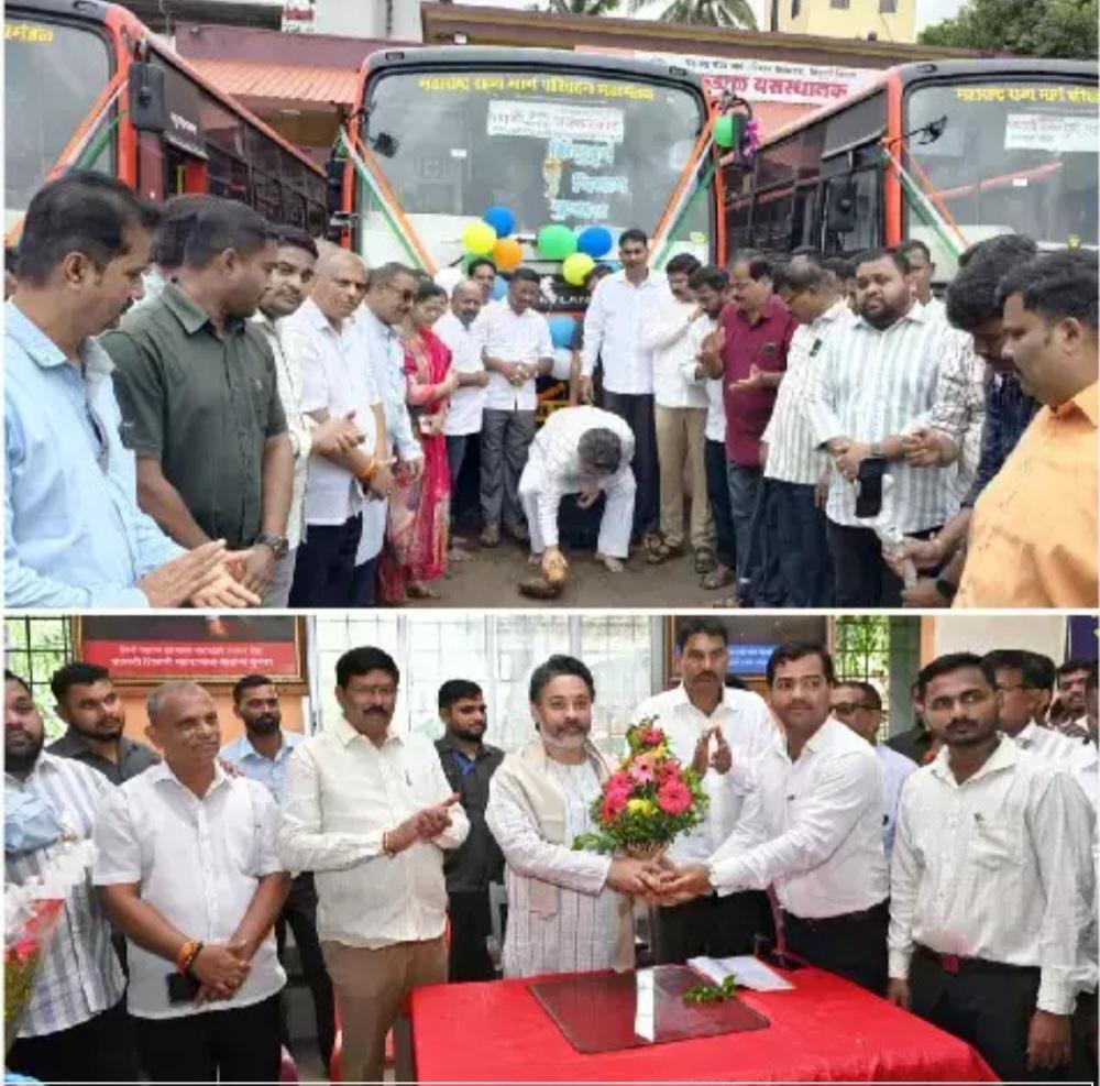 आगार प्रमुख रोहित नाईक म्हणाले, आ.निलेश राणे यांच्या अथक प्रयत्नांतून कुडाळ आगाराला मंजूर झालेल्या दहा पैकी पाच नवीन बसेस पहिल्या टप्प्यात आगाराला प्राप्त झाल्या आहेत. अद्ययावत प्रणाली असलेल्या या बसेस आहेत. डिझेलवर चालणा-या या बसेस असून साध्या दरात प्रवाशांना आरामदायी प्रवास करता येणार आहे. या बसेस मध्ये अनेक सोईसुविधा उपलब्ध करून देण्यात आल्या आहेत.