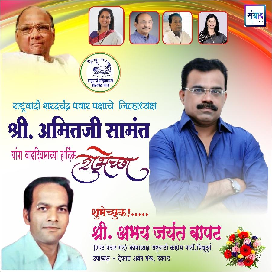 *राष्ट्रवादी पक्षाचे जिल्हाध्यक्ष श्री. अमितजी सामंत यांना वाढदिवसाच्या हार्दिक शुभेच्छा!!*💐💐*