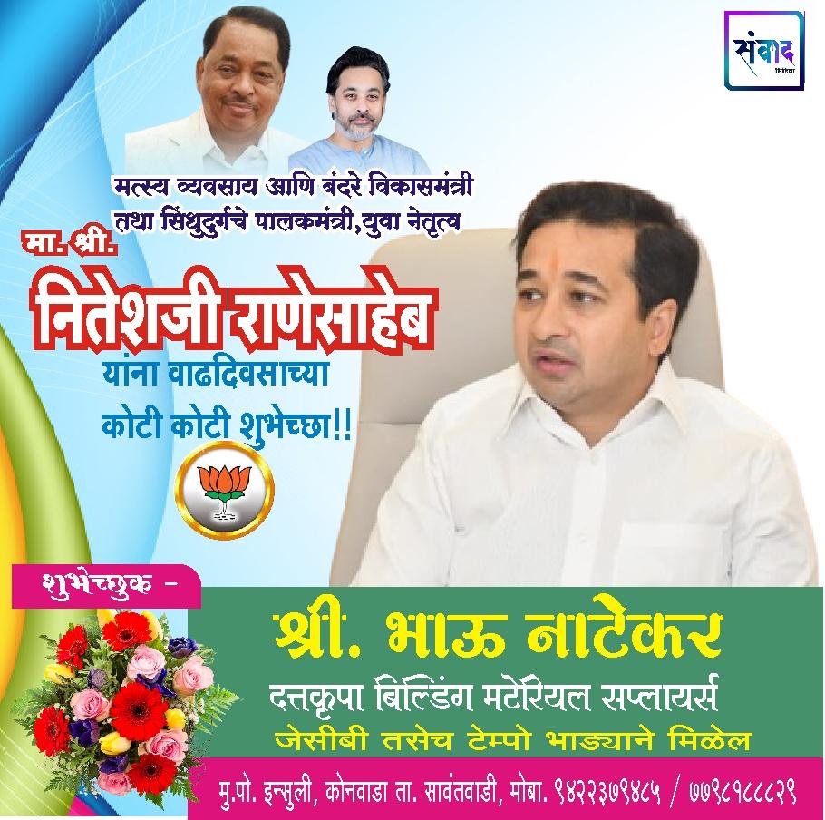 *मत्स्य व्यवसाय आणि बंदरे विकासमंत्री तथा सिंधुदुर्गचे पालकमंत्री, युवा नेतृत्व नितेशजी राणे साहेब यांना वाढदिवसाच्या हार्दिक शुभेच्छा!!!💐💐*