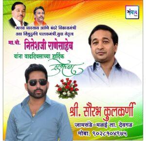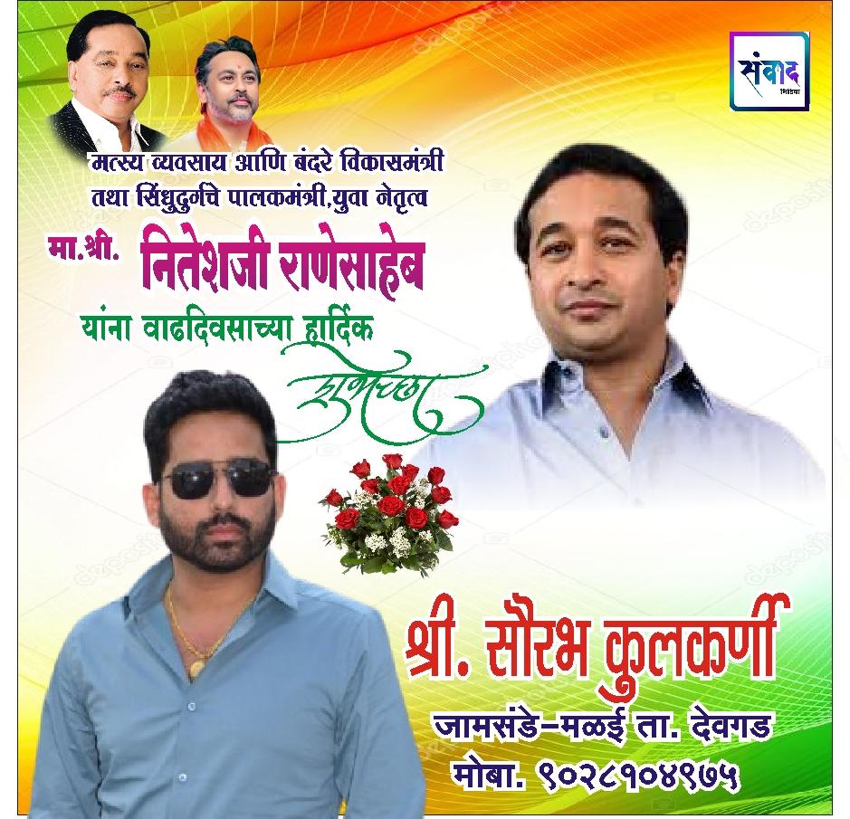 *मत्स्य व्यवसाय आणि बंदरे विकासमंत्री तथा सिंधुदुर्गचे पालकमंत्री, युवा नेतृत्व नितेशजी राणे साहेब यांना वाढदिवसाच्या कोटी कोटी शुभेच्छा!!!💐💐*