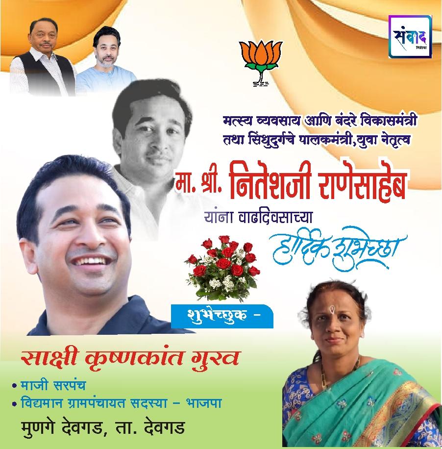 *मत्स्य व्यवसाय आणि बंदरे विकासमंत्री तथा सिंधुदुर्गचे पालकमंत्री, युवा नेतृत्व नितेशजी राणे साहेब यांना वाढदिवसाच्या मनःपूर्वक शुभेच्छा!!!💐💐*