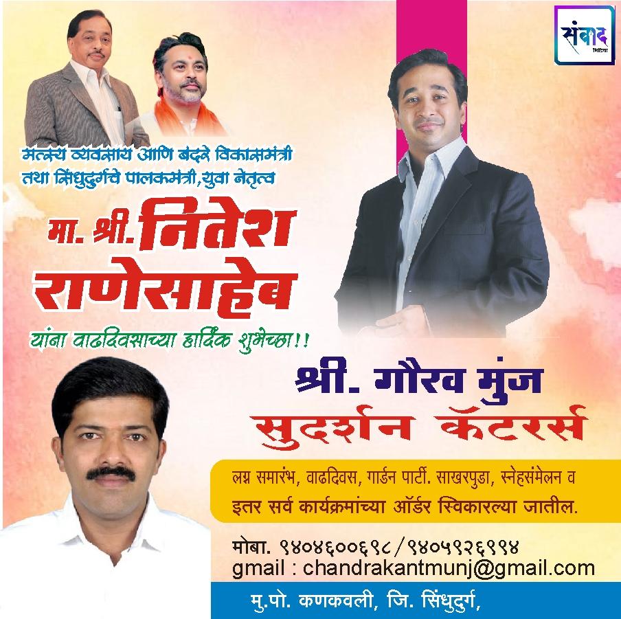 *मत्स्य व्यवसाय आणि बंदरे विकासमंत्री तथा सिंधुदुर्गचे पालकमंत्री, युवा नेतृत्व नितेशजी राणे साहेब यांना वाढदिवसाच्या मनःपूर्वक शुभेच्छा!!!💐💐*