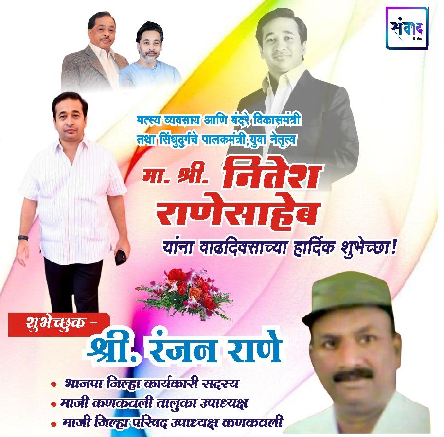 *मत्स्य व्यवसाय आणि बंदरे विकासमंत्री तथा सिंधुदुर्गचे पालकमंत्री, युवा नेतृत्व नितेशजी राणे साहेब यांना वाढदिवसाच्या मन:पुर्वक शुभेच्छा!!!💐💐*