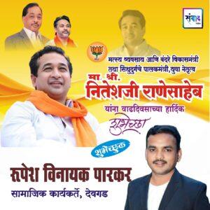 *मत्स्य व्यवसाय आणि बंदरे विकासमंत्री तथा सिंधुदुर्गचे पालकमंत्री, युवा नेतृत्व नितेशजी राणे साहेब यांना वाढदिवसाच्या मन: पुर्वक शुभेच्छा!!!💐💐*