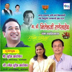 सिंधुदुर्गचे पालकमंत्री, ‌युवा नेतृत्व नितेशजी राणे साहेब यांना ‌वाढदिवसाच्या ‌‌मन: पुर्वक शुभेच्छा!!!💐 – श्री. सुदेश आचरेकर