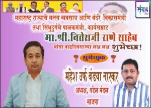 महाराष्ट्र राज्याचे मत्स्य व्यवसाय आणि बंदरे विकासमंत्री तथा सिंधुदुर्गचे पालकमंत्री, कार्यसम्राट मा. श्री नितेशजी राणे साहेब यांना वाढदिवसाच्या लक्ष लक्ष शुभेच्छा !💐