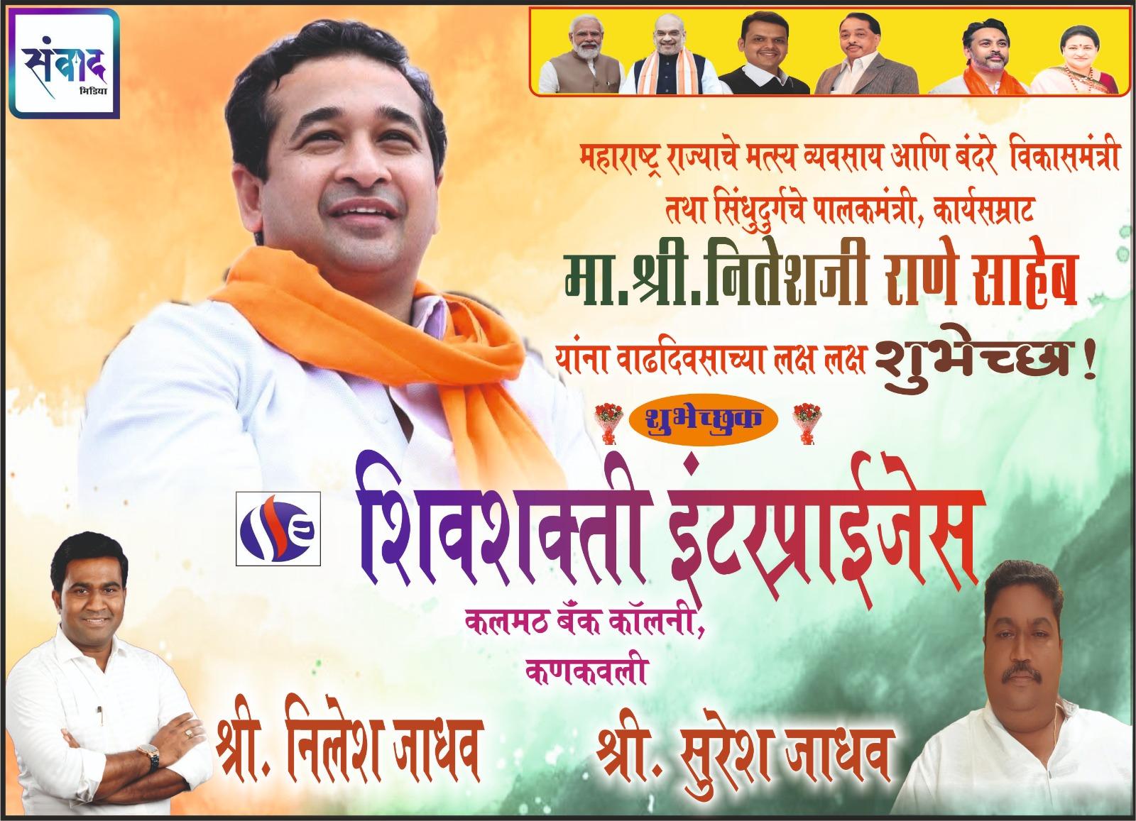 महाराष्ट्र राज्याचे मत्स्य व्यवसाय आणि बंदरे विकासमंत्री तथा सिंधुदुर्गचे पालकमंत्री, कार्यसम्राट मा. श्री नितेशजी राणे साहेब यांना वाढदिवसाच्या लक्ष लक्ष शुभेच्छा !💐