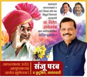 महाराष्ट्राचे मत्स्यव्यवसाय व बंदरे विकास मंत्री तथा सिंधुदुर्ग जिल्ह्याचे पालकमंत्री नाम. नितेश राणे साहेब यांना वाढदिवसाच्या हार्दिक शुभेच्छा ! 💐