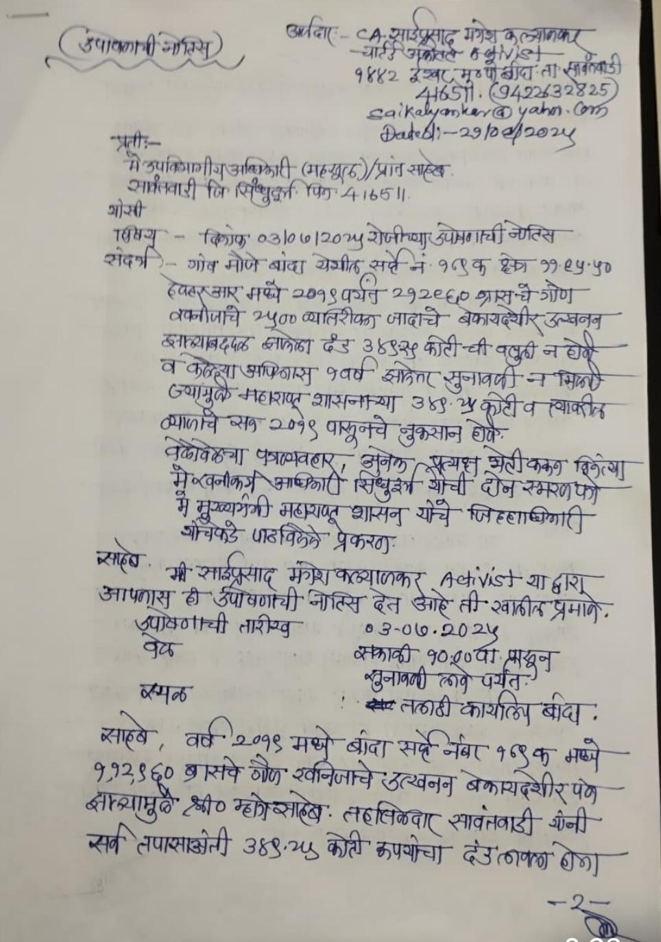 दिनांक 25/06/2025रोजी 10 वाजल्या पासून तलाठी ऑफिस बांदा येथे साईप्रसाद मंगेश कल्याणकर बांदा यांचे उपोषण आहे.