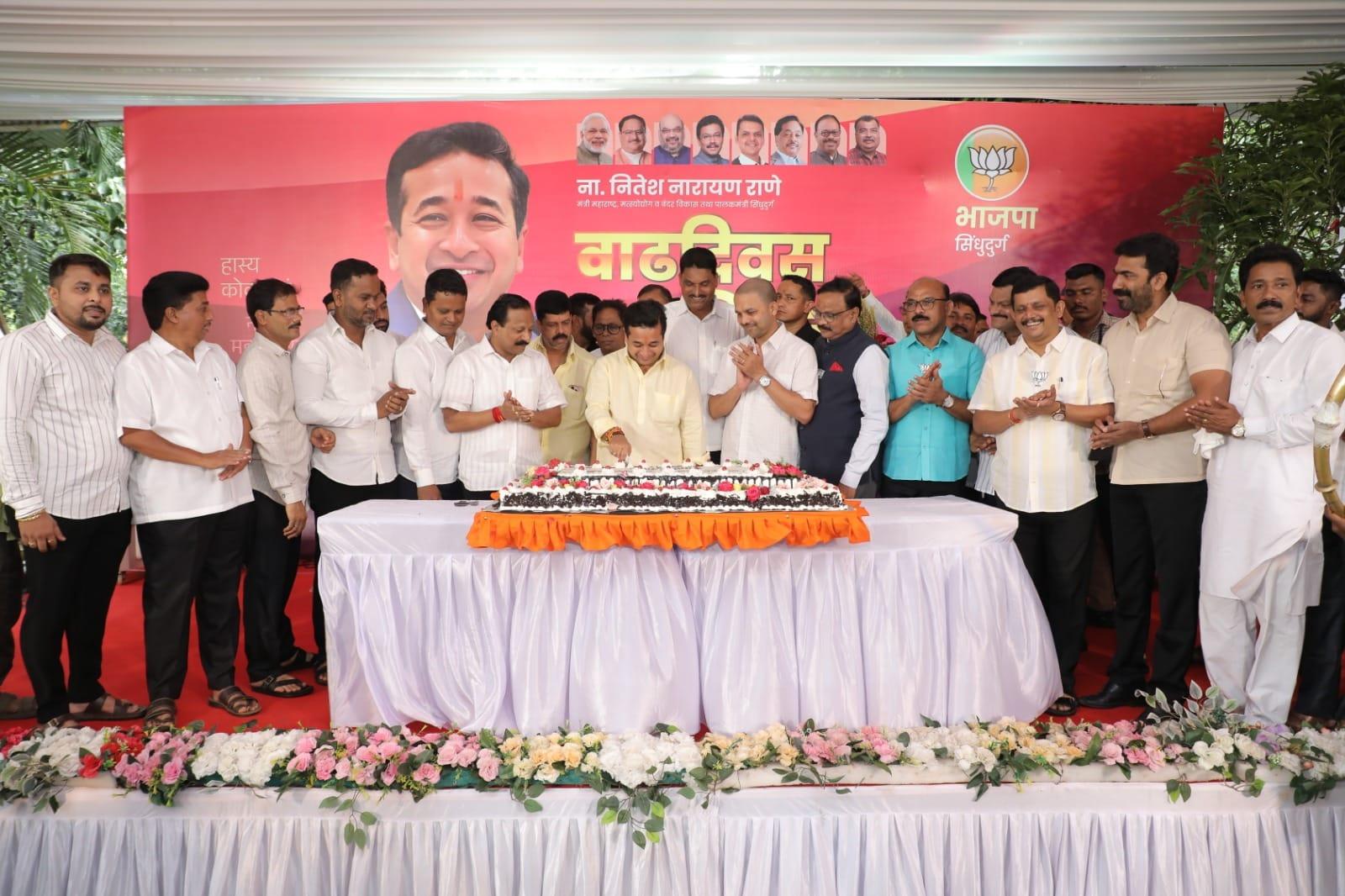 महाराष्ट्र राज्याचे मत्स्य व बंदर विकास मंत्री तथा सिंधुदुर्गचे पालकमंत्री नाम. नितेश राणे यांच्या वाढदिवसानिमित्त शुभेच्छा देण्यासाठी येथील ओम गणेश निवासस्थानी मोठी गर्दी उसळली. मंत्री नितेश राणे यांचे ओम गणेश निवासस्थानी आगमन झाल्यानंतर कार्यकर्त्यांनी फटाक्याची जोरदार आतषबाजी करत ढोल ताशांच्या गजरात मंत्री नितेश राणे यांचे स्वागत केले.