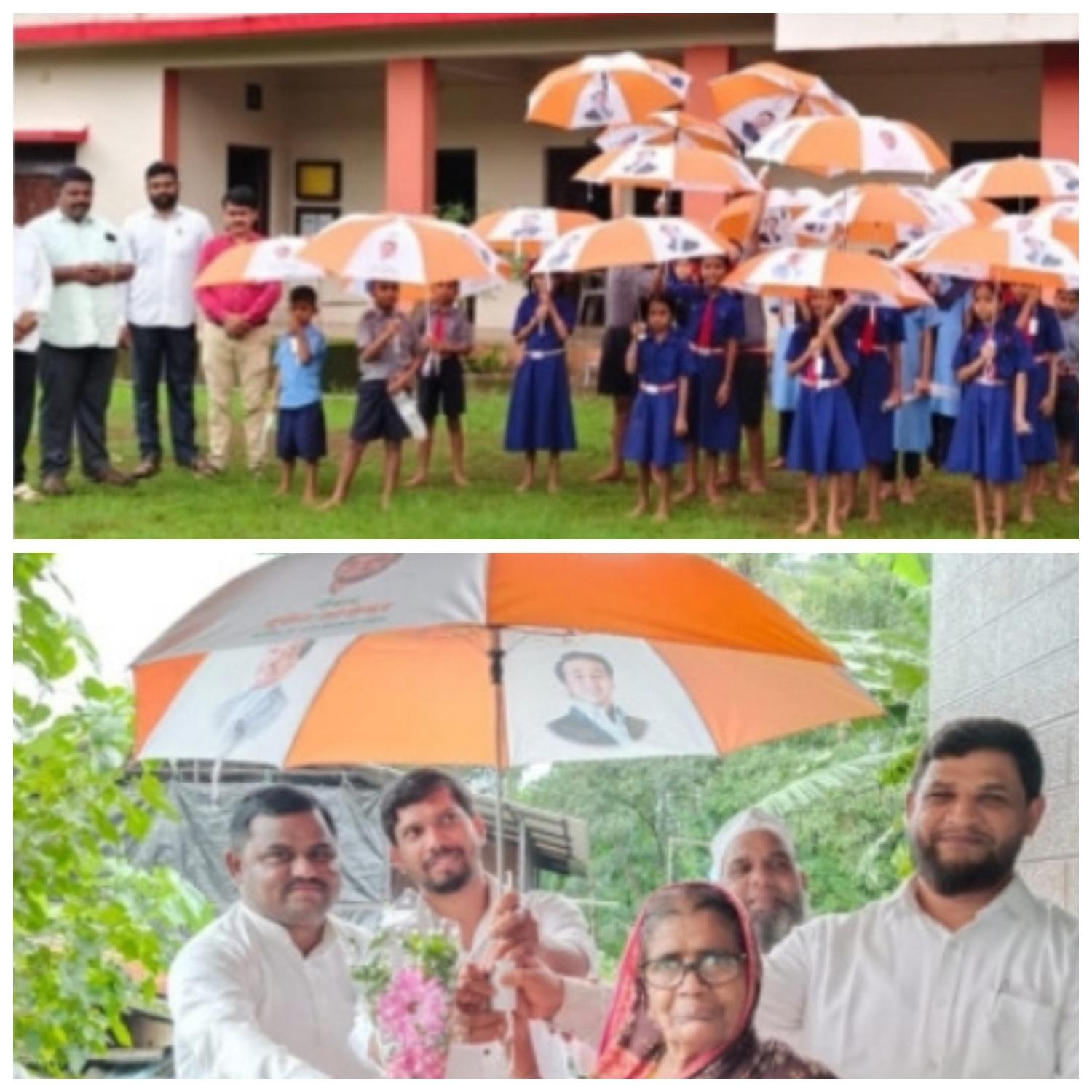 पालकमंत्री नितेश राणे यांच्या वाढदिवसानिमित्त वैभववाडी तालुक्यात हूसेन लांजेकर यांच्याकडून १००० छत्र्यांचे वाटप