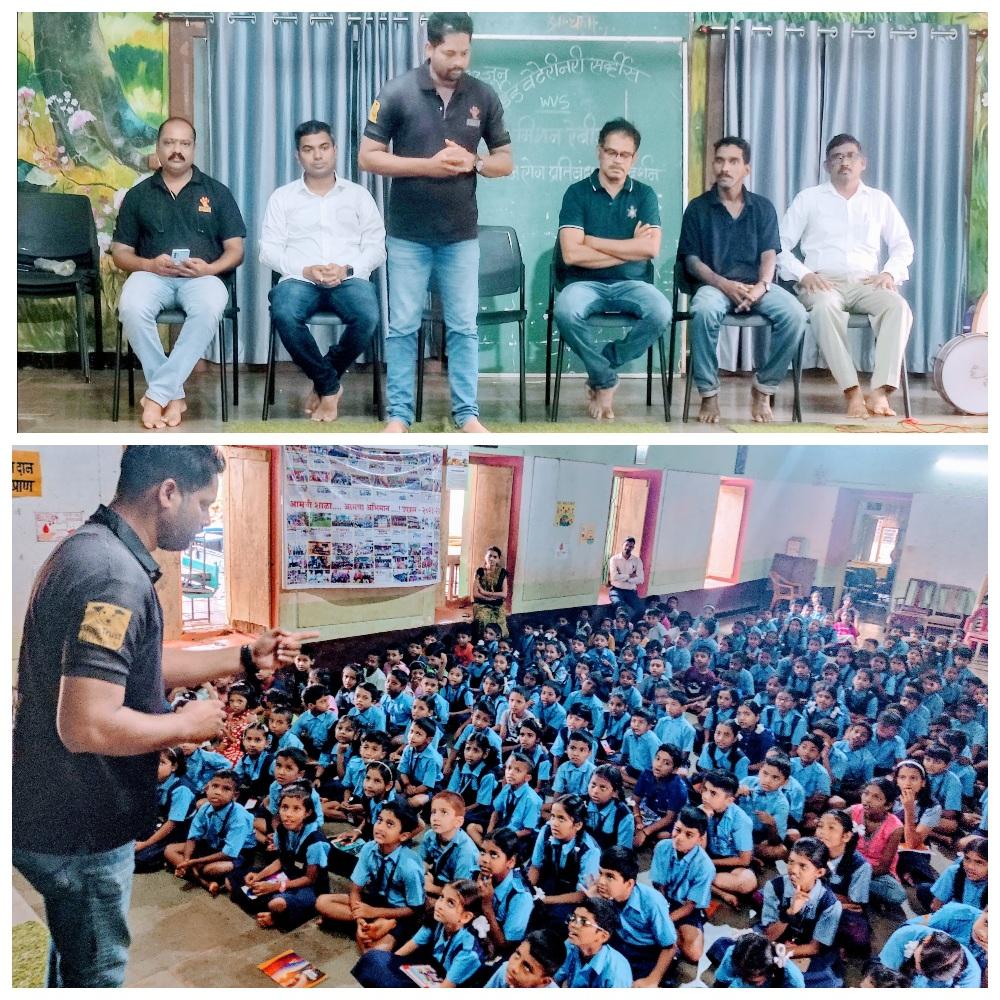 शाळा व्यवस्थापन समितीचे अध्यक्ष रत्नाकर आगलावे यांच्या अध्यक्षतेखाली संपन्न झालेल्या या मार्गदर्शन वर्गात रेबीज मिशन बाबत अमित नाईक व वसंत तावडे यांनी विद्यार्थ्यांना पाळीव प्राण्यांची काळजी कशी घ्यावी,प्राण्यांना होणारे विविध आजार, रेबीज रोगाचा प्रसार कसा होतो तसेच कुत्रा चावल्यानंतर जखम झाल्यास कोणती काळजी घ्यावी,रेबीज या रोगावरील औषधोपचार याबाबत विद्यार्थ्यांना माहिती समजावून सांगितली तसेच एखाद्या वेळी भटका कुत्रा अंगावर धावून येत असेल तर कशी काळजी घ्यावे यांचे प्रात्यक्षिक दाखवून ते विद्यार्थ्यांच्याकडून करून घेण्यात आले.