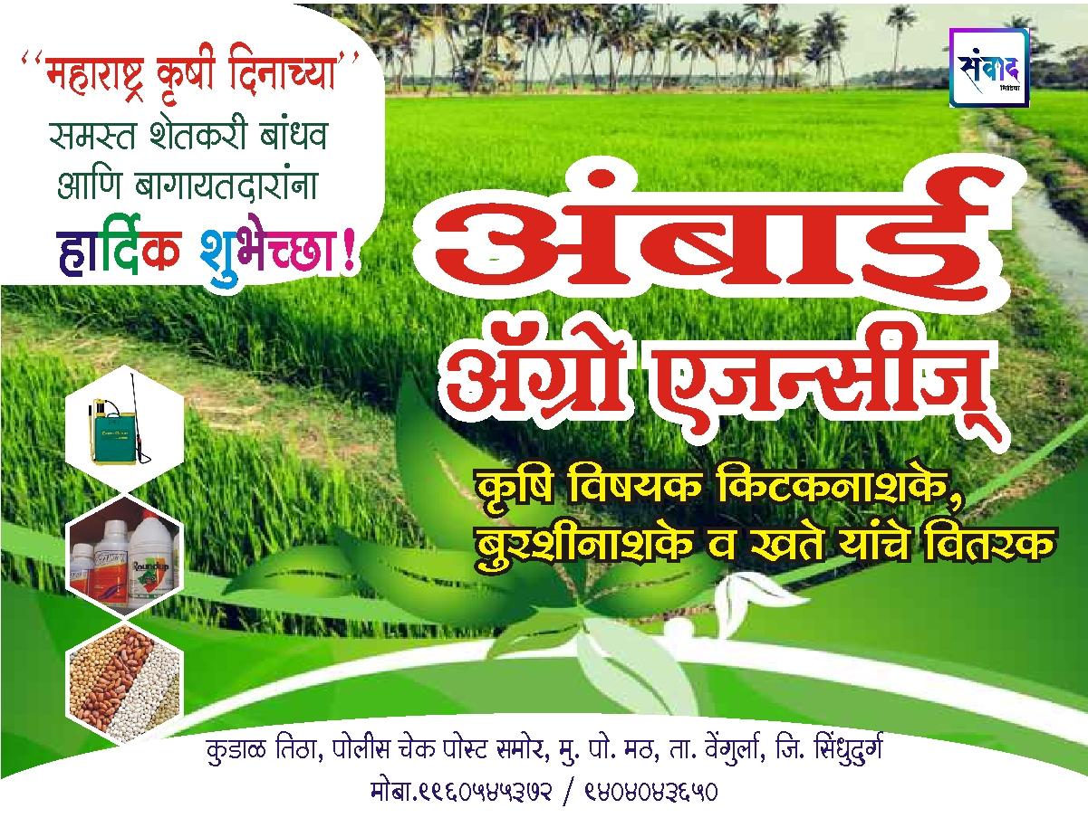 *महाराष्ट्र कृषी दिनाच्या समस्त शेतकरी बांधव आणि बागायतदारांना हार्दिक शुभेच्छा!*💐