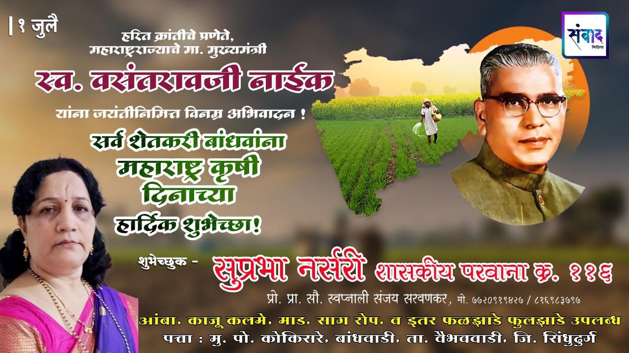 १ जुलै महाराष्ट्र कृषी दिनाच्या सर्व शेतकरी बांधवांना हार्दिक शुभेच्छा!🌱🌴