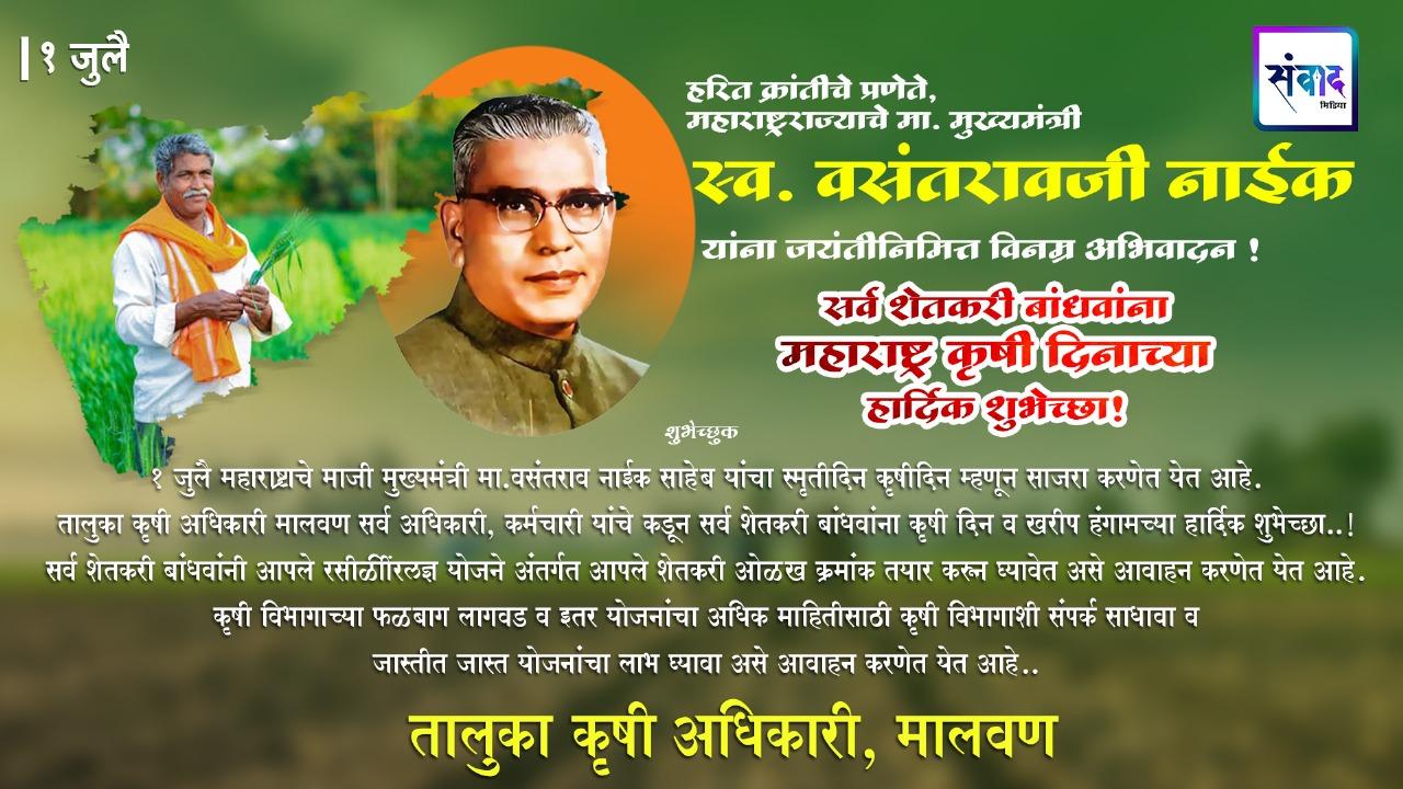 🔸तालुका कृषी अधिकारी मालवण सर्व अधिकारी, कर्मचारी यांचे कडून सर्व शेतकरी बांधवांना कृषी दिन व खरीप हंगामच्या हार्दिक शुभेच्छा..!