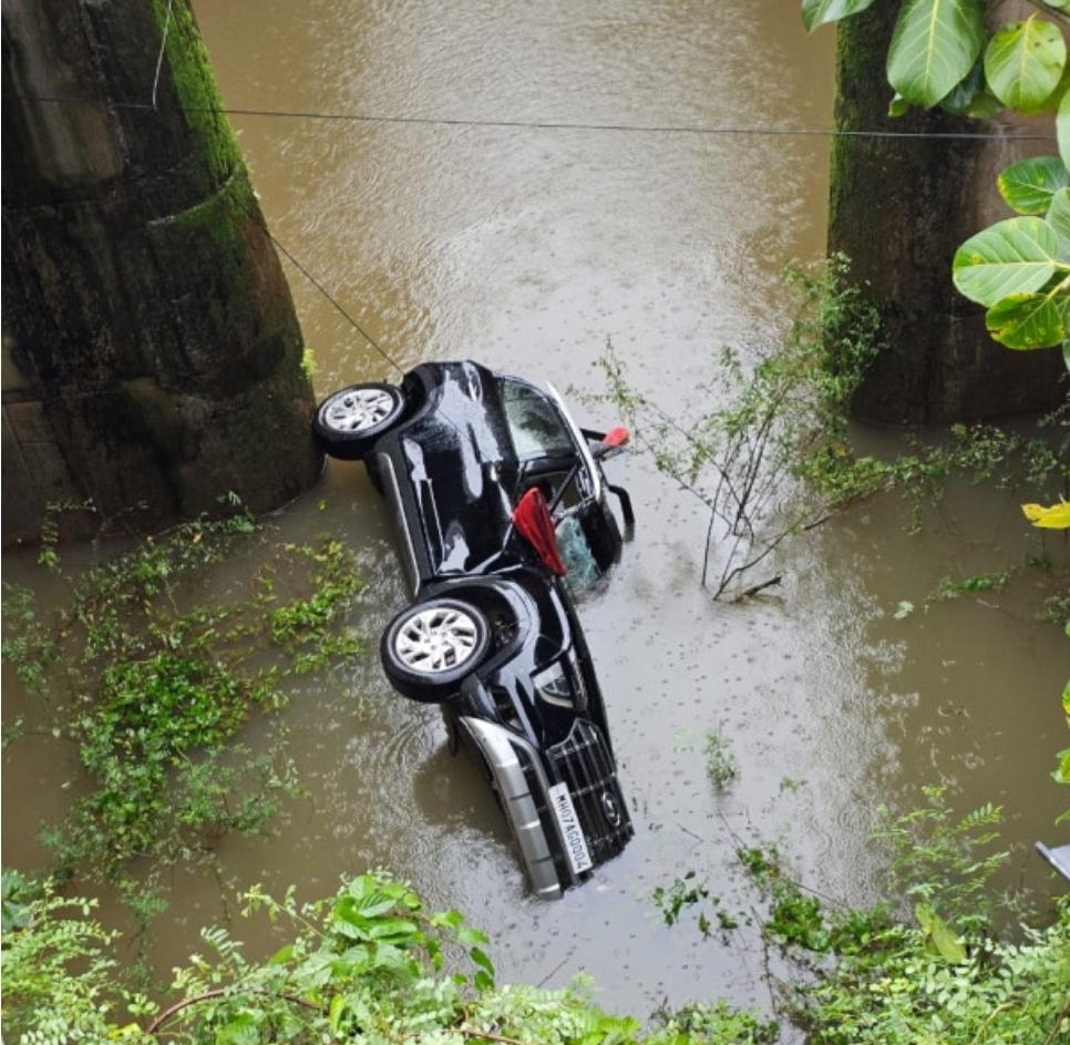 सावंतवाडीतील कार बांदा दुसऱ्या पुलावरून सुसाट ६० फूट खोल ओहोळत कोसळली, कार मधील सर्व सुरक्षित