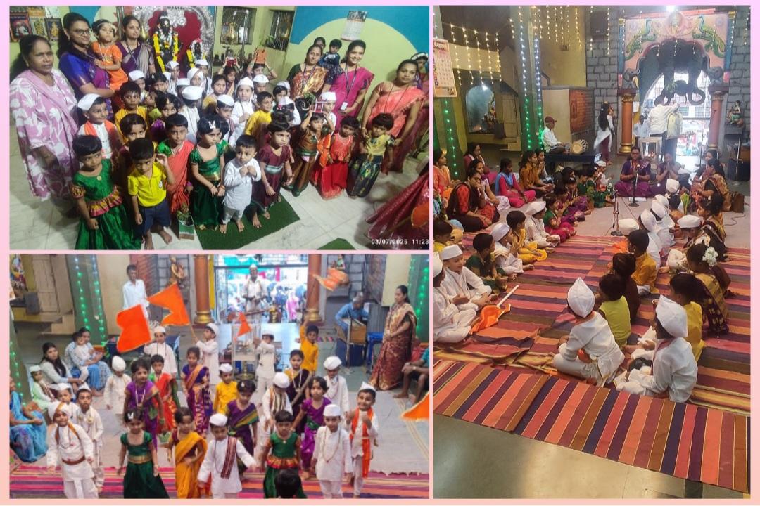 आषाढी वारीचे औचित्य साधून कळसुलकर शाळेच्या आनंद शिशुवाटिकेने आपल्या सर्व विद्यार्थ्यांची वारकरी दिंडी आज दि. ३ जुलै रोजी आयोजित केली. ही छोट्या वारकऱ्यांची दिंडी सावंतवाडी च्या प्रसिद्ध विठ्ठल मंदिरात पोहोचली. डोक्यावर तुळशी आणि हाती भगव्या पताका टाळ घेऊन हे छोटे वारकरी श्री विठ्ठल भक्तीत तल्लीन झाले. विद्यार्थी वर्गासमवेत शिशुवाटिकेच्या शिक्षिका आणि कर्मचारी वर्ग सुद्धा तल्लीन होऊन अभंग गायनात सहभागी झाले. आनंद शिशुवाटिकेच्या या उपक्रमाचे श्री विठ्ठल मंदिर सावंतवाडी च्या वतीने कौतुक करण्यात आले.