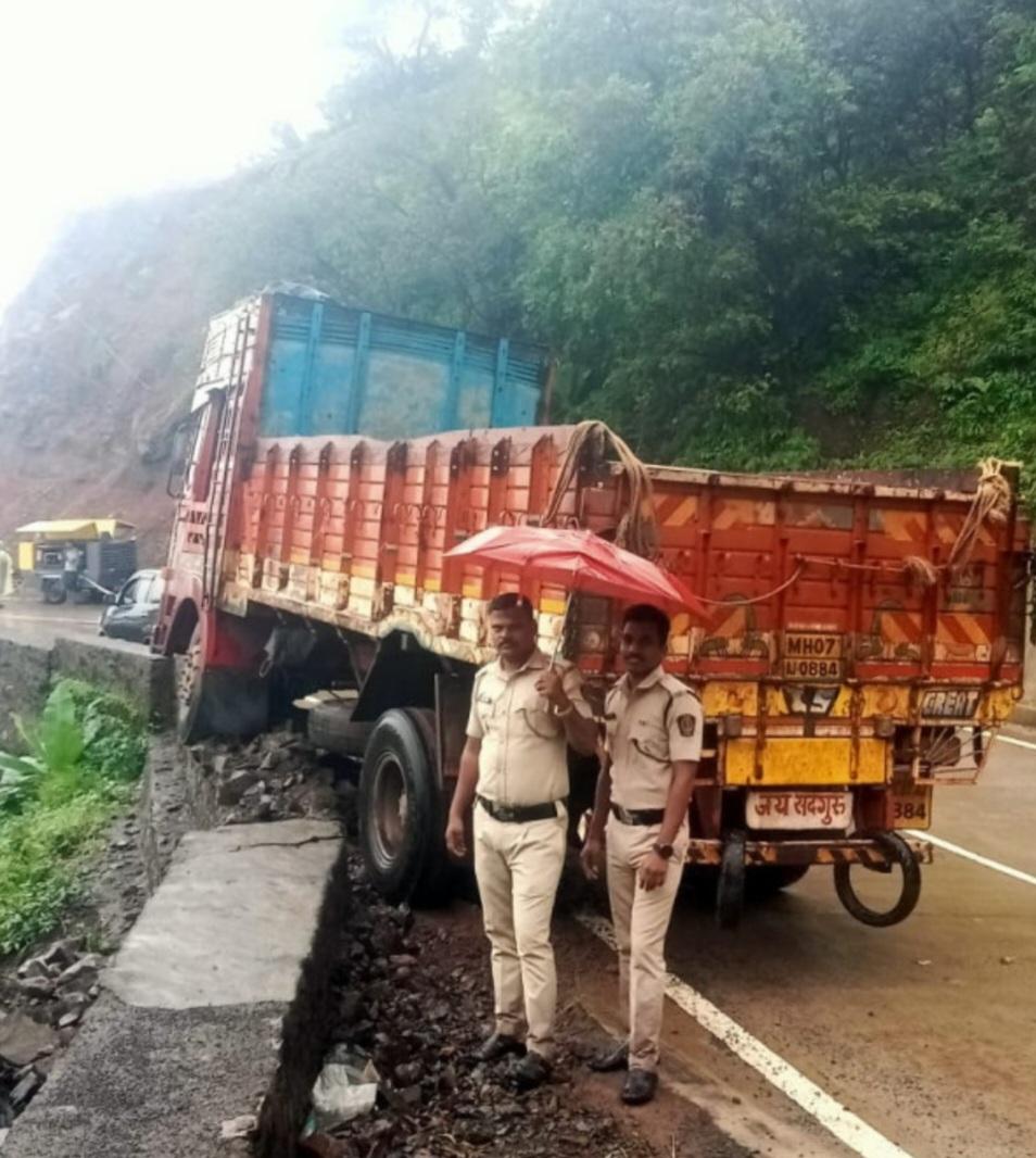 करुळ घाटात ट्रक कठड्याला आदळला. या अपघातात ट्रकचे नुकसान झाले आहे. अपघाताची माहिती मिळताच वैभववाडी पोलीस घटनास्थळी दाखल झाले आहेत. ट्रक चालक सुनील गेमू जाधव वय ३८ रा. आनंदनगर कासार्डे हे कोल्हापूरहून वैभववाडीच्या दिशेने ट्रक (नं. एम एच ०७ एजे – ०८८४) घेऊन जात होते. करुळ घाटात ट्रक आला असता चालकाचा ट्रकवरील ताबा सुटला. व ट्रक दरीकडील कठड्याला आदळला. ट्रक ची पुढील चाकं कठड्यावर होती. खोल दरीत ट्रक जाता जाता बचावला. अपघात ठिकाणी पोलीस बंदोबस्त ठेवण्यात आला आहे. पोलीसांनी वाहतूक सुरळीत केली आहे. पुढील तपास वैभववाडी पोलीस करत आहेत.