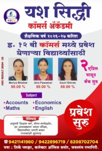 🌹 *यश सिद्धी कोचिंग क्लासेस सायन्स अँड कॉमर्स अकॅडमी* 🌹