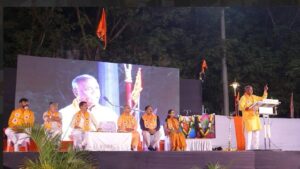 ‘भगवद्गीता हा केवळ एक ग्रंथ नसून तो मानवी जीवन जगण्याचा मार्गदर्शक पथ आहे!’ असे प्रतिपादन विश्व हिंदू परिषदेचे केंद्रीय सहमंत्री तथा राष्ट्रीय प्रवक्ते शंकर गायकर यांनी महासाधू मोरया गोसावी क्रीडासंकुल, चिंचवडगाव येथे रविवार, दिनांक २२ फेब्रुवारी २०२६ रोजी केले. विश्व हिंदू परिषद व बजरंग दल – पिंपरी चिंचवड यांच्या वतीने आयोजित हिंदू स्वाभिमान मेळाव्यात प्रमुख मार्गदर्शक म्हणून शंकर गायकर बोलत होते. यावेळी इस्कॅान मंदिर, रावेतचे प्रमुख गोपती दास, विश्व हिंदू परिषद प्रांतमंत्री किशोर चव्हाण, प्रांत सहमंत्री ॲड. सतिश गोरडे, नितीन वाटकर, प्रांत उपाध्यक्षा माधवी सौंशी, परेश पटेल यांची व्यासपीठावर प्रमुख उपस्थिती होती; तसेच समाजातील विविध क्षेत्रांतील मान्यवरांची मैदानात उपस्थिती होती.
