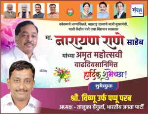 कोकणचे भाग्यविधाते, महाराष्ट्र राज्याचे माजी मुख्यमंत्री, माजी केंद्रीय मंत्री तथा विद्यमान खासदार मा. नारायण राणे साहेब यांच्या अमृत महोत्सवी वाढदिवसानिमित्त हार्दिक शुभेच्छा ! – श्री. विष्णू परब
