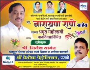 कोकणचे भाग्यविधाते, महाराष्ट्र राज्याचे माजी मुख्यमंत्री, माजी केंद्रीय मंत्री तथा विद्यमान खासदार मा. नारायण राणे साहेब यांच्या अमृत महोत्सवी वाढदिवसानिमित्त हार्दिक शुभेच्छा ! – श्री. निलेश सामंत