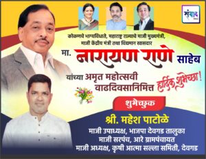 कोकणचे भाग्यविधाते, महाराष्ट्र राज्याचे माजी मुख्यमंत्री, माजी केंद्रीय मंत्री तथा विद्यमान खासदार मा. नारायण राणे साहेब यांच्या अमृत महोत्सवी वाढदिवसानिमित्त हार्दिक शुभेच्छा !💐