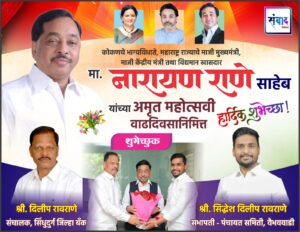 कोकणचे भाग्यविधाते, महाराष्ट्र राज्याचे माजी मुख्यमंत्री, माजी केंद्रीय मंत्री तथा विद्यमान खासदार मा. नारायण राणे साहेब यांच्या अमृत महोत्सवी वाढदिवसानिमित्त हार्दिक शुभेच्छा ! – श्री. दिलीप रावराणे