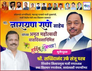 कोकणचे भाग्यविधाते, महाराष्ट्र राज्याचे माजी मुख्यमंत्री, माजी केंद्रीय मंत्री तथा विद्यमान खासदार मा. नारायण राणे साहेब यांच्या अमृत महोत्सवी वाढदिवसानिमित्त हार्दिक शुभेच्छा ! – श्री. सच्चिदानंद परब